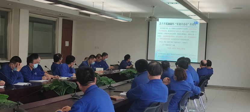 2022年公司質(zhì)量月啟動會于8月23日上午在公司辦公樓310會議室召開。公司總經(jīng)理米永旺、常務(wù)副總梁敬斌、銷售副總侯志平、生產(chǎn)副總侯國棟、工會主席趙金伶,各分廠廠長、事業(yè)部部長及技術(shù)質(zhì)量主管,技術(shù)研發(fā)部部長、副部長、室主任,工藝室、材料室專業(yè)技術(shù)人員,質(zhì)管部長、副部長、主任工程師,生產(chǎn)計劃部部長、運行保障部部長、采購部部長、對外協(xié)作部部長等參加了會議。