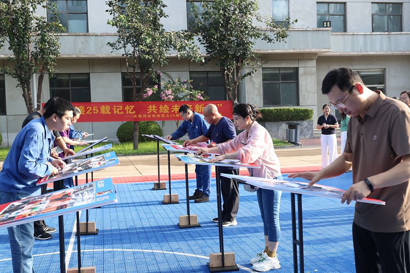 “拼接25載記憶,共繪未來新篇”,在生活區(qū)籃球場上舉辦的慶祝河冶科技成立25周年回憶照片拼圖比賽,讓一幅幅生動的照片講述了公司25年的精彩歷程,老員工們在拼圖中回憶著自己奮斗的青春歲月,新員工們在拼圖中了解著公司的成長經(jīng)歷。