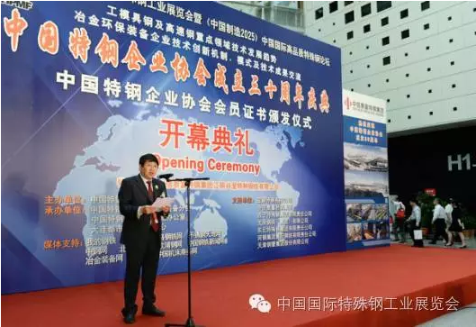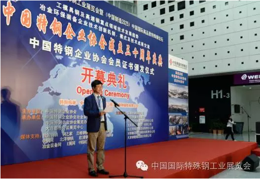 中國(guó)國(guó)際特殊鋼工業(yè)展覽會(huì)開(kāi)幕式由九屆六次執(zhí)行會(huì)長(zhǎng)寶鋼特鋼總經(jīng)理龐遠(yuǎn)林主持,中國(guó)特鋼企業(yè)協(xié)會(huì)會(huì)長(zhǎng)中信泰富特鋼集團(tuán)董事長(zhǎng)俞亞鵬致開(kāi)幕詞,中國(guó)鋼鐵工業(yè)協(xié)會(huì)副會(huì)長(zhǎng)王利群和中國(guó)鋼研科技集團(tuán)副總經(jīng)理田志凌致賀詞。參加開(kāi)幕式剪彩的領(lǐng)導(dǎo)及嘉賓有:寶鋼特鋼有限公司總經(jīng)理龐遠(yuǎn)林、中信泰富特鋼集團(tuán)董事長(zhǎng)俞亞鵬、西寧特殊鋼集團(tuán)有限責(zé)任公司董事長(zhǎng)、黨委書(shū)記楊忠、中國(guó)鋼鐵工業(yè)協(xié)會(huì)副會(huì)長(zhǎng)王利群、中國(guó)鋼鐵工業(yè)協(xié)會(huì)副會(huì)長(zhǎng)、冶金規(guī)劃研究院院長(zhǎng)李新創(chuàng)、中國(guó)鋼研科技集團(tuán)有限公司副總經(jīng)理田志凌、中信泰富特鋼集團(tuán)總裁錢剛、東北特殊鋼集團(tuán)有限責(zé)任公司總工程師董學(xué)東、太原鋼鐵(集團(tuán))有限公司副總柴志勇、舞陽(yáng)鋼鐵有限責(zé)任公司董事長(zhǎng)鄧建軍、天津鋼管集團(tuán)有限公司副總工程師楊在安、中國(guó)特鋼企業(yè)協(xié)會(huì)不銹鋼分會(huì)常務(wù)副會(huì)長(zhǎng)劉復(fù)興、河鋼集團(tuán)石鋼公司總工程師齊建軍等。開(kāi)幕式后全體參觀了展覽會(huì)。